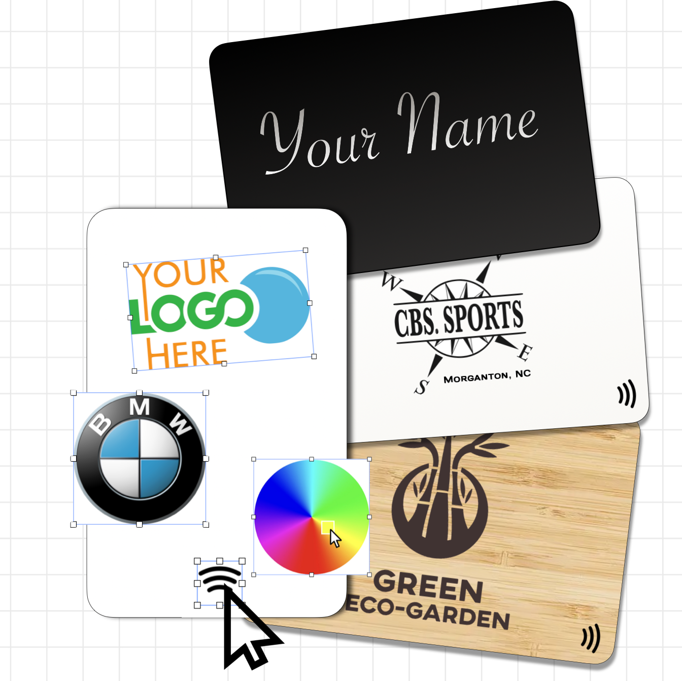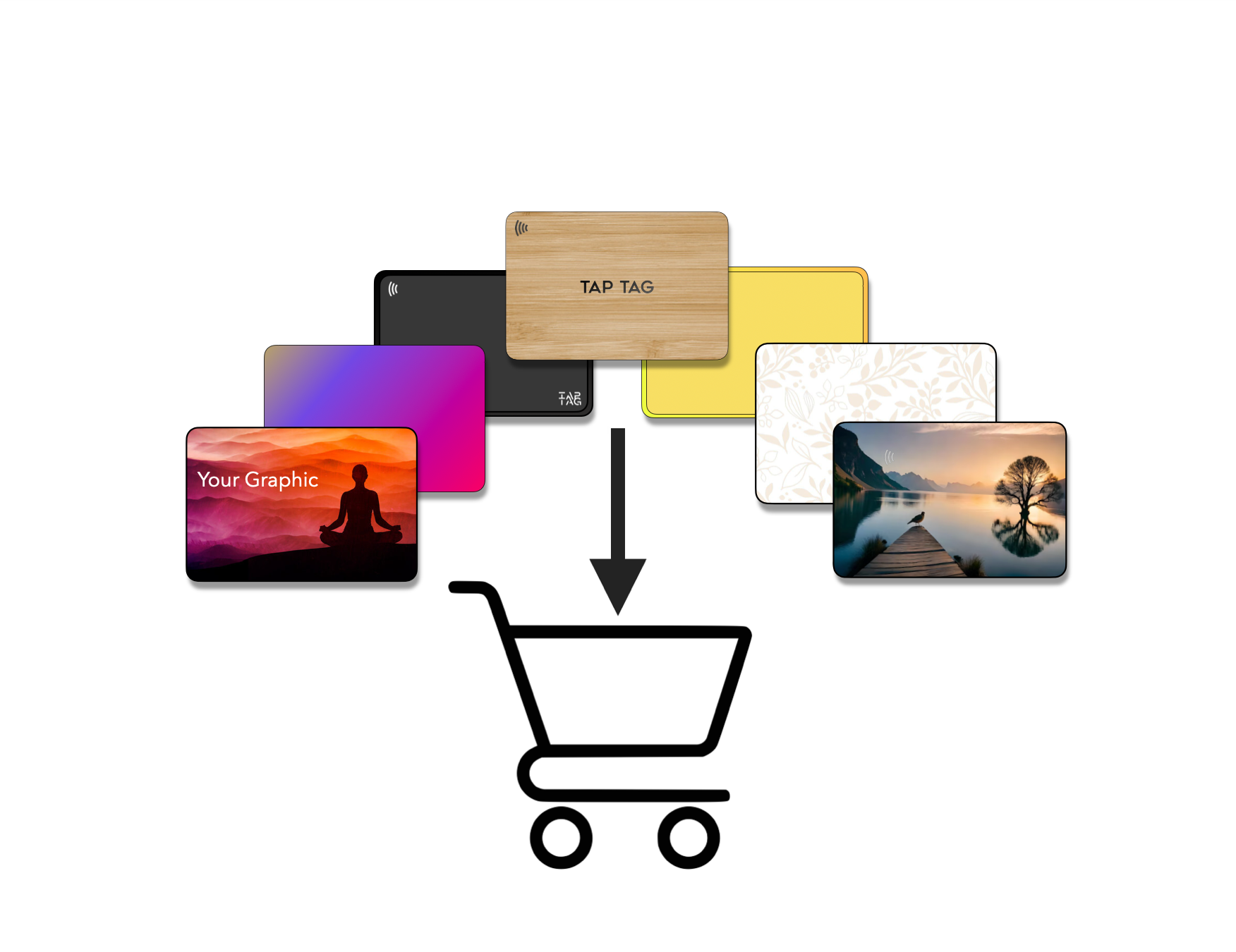 It is important to note that ALL products do the exact same thing, tap or scan to leave a review. Some can be customized with your own graphics while other come how they are shown.