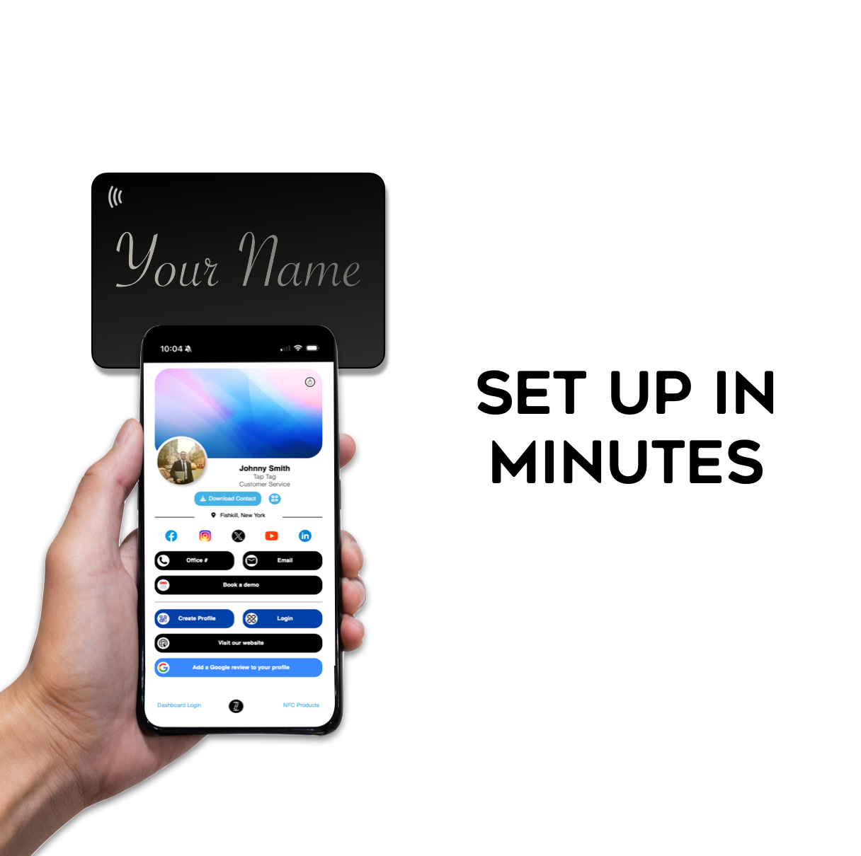 All Tap Tag business cards have Tap NFC Technology to seamlessly share your contact or website with any smartphone.