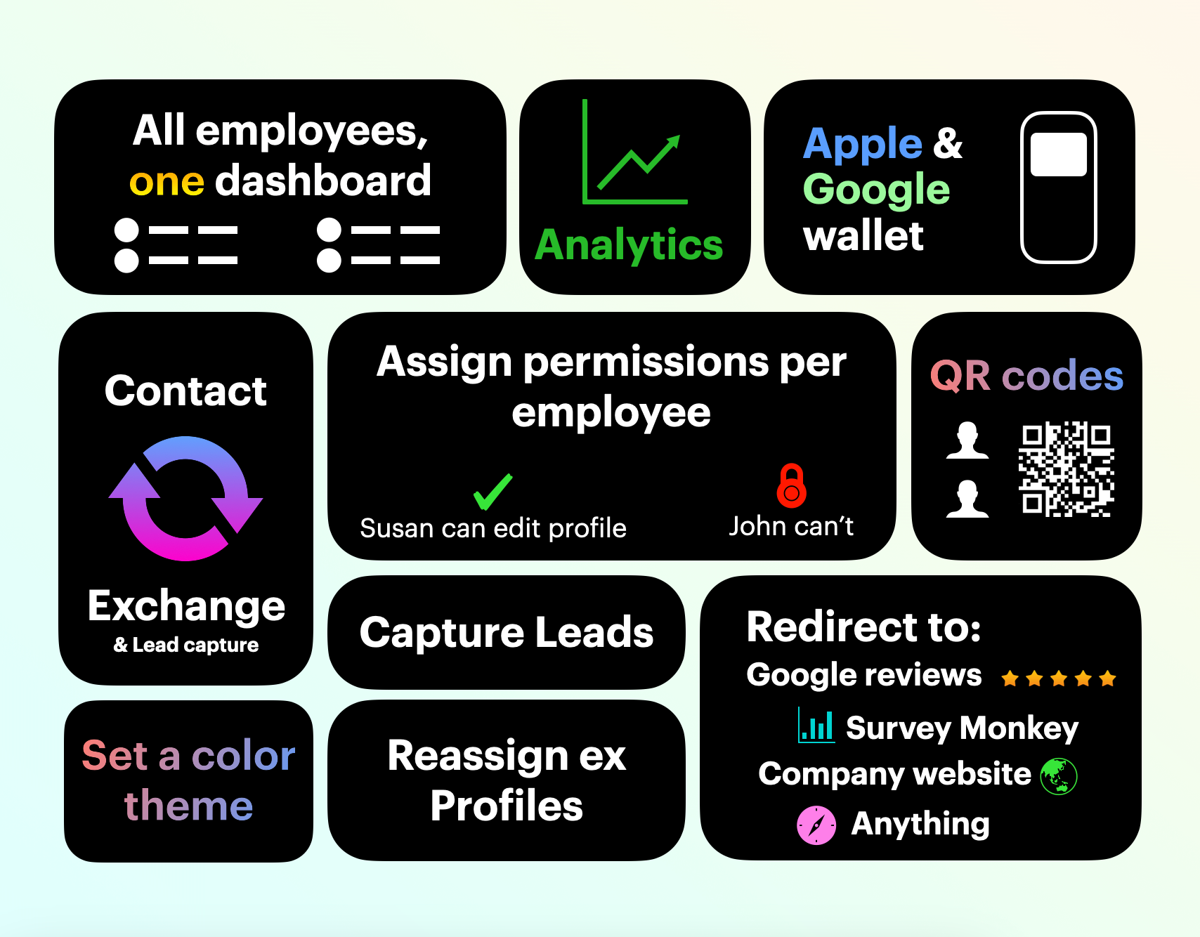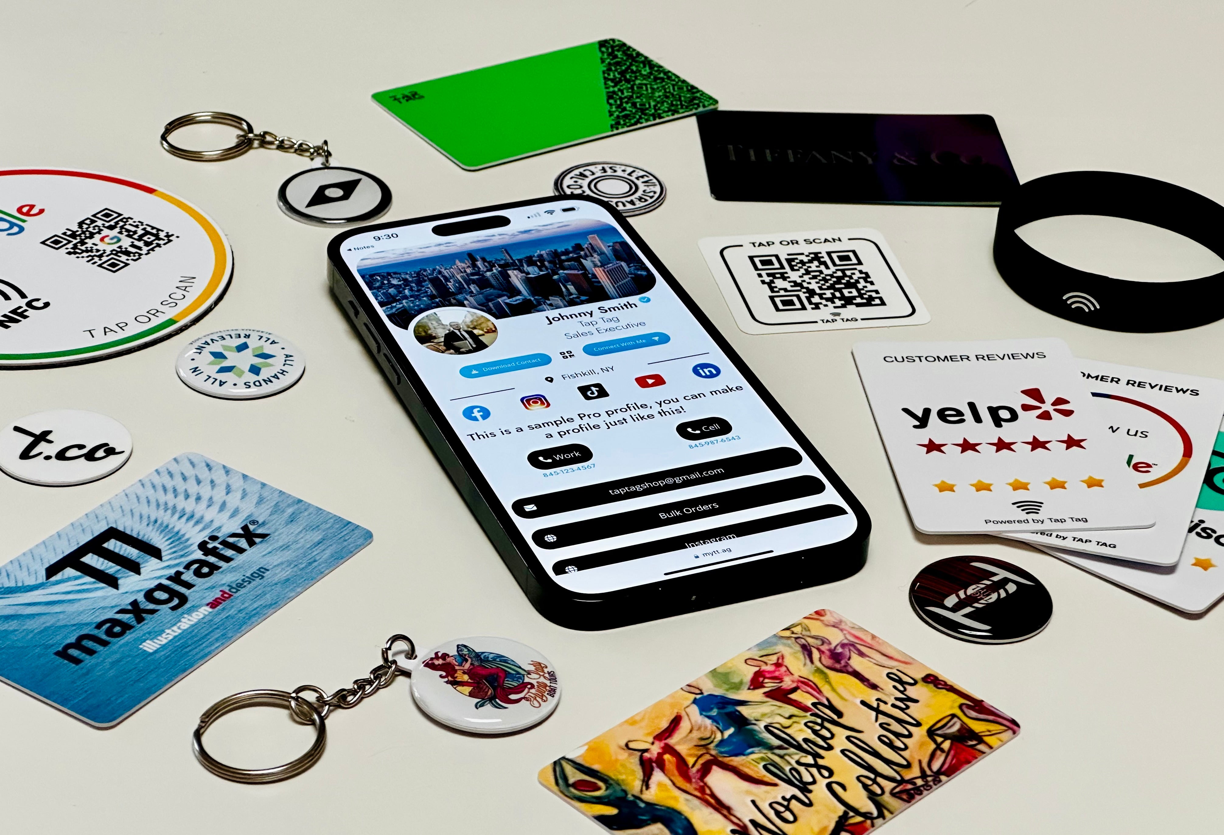Over 40 tap items to choose from. Get custom Digital business cards for the office, hand out Custom Tap Tags at a trade show, or get Google review signs for all the franchise locations. The possibilities are endless.