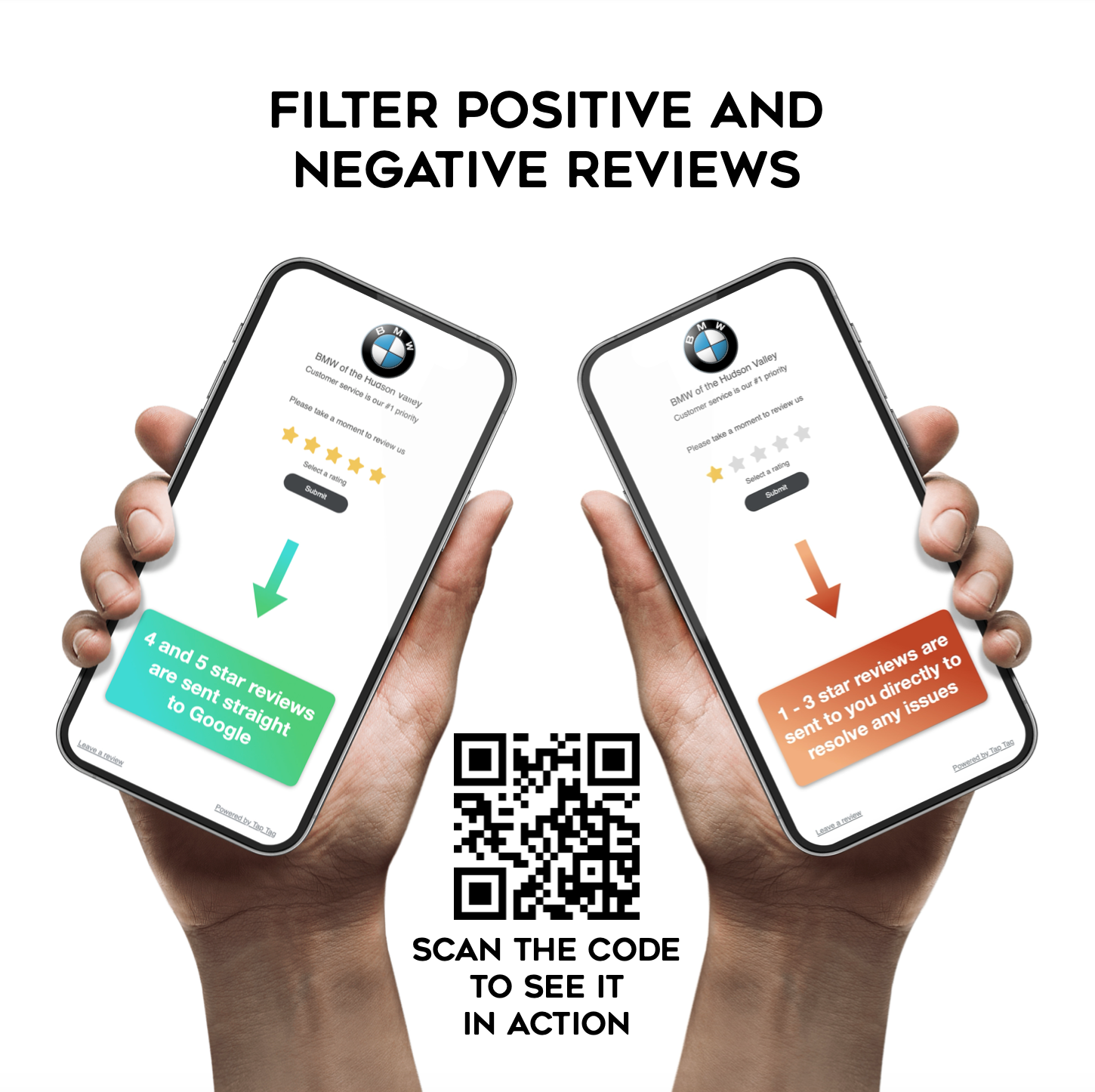 Any reviews left on the filter page do not relay to actual review sites. If leaving 5 stars, the user will still have to then click Google, Yelp, or any other button you may have on the following page.