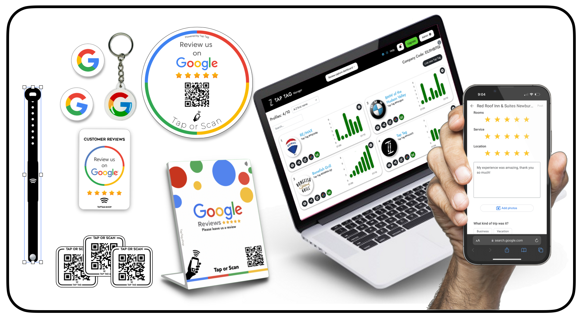 To service our lineup of Google and review products, this platform focuses on capturing reviews for your business. Link your Tap Tags with Google, Yelp, or any public review platform using our easy setup then beam it to smartphones with tap technology. A review-specific dashboard helps track scans, share/manage your review page, and update Tap Tags in realtime. This service is broken down into there options: