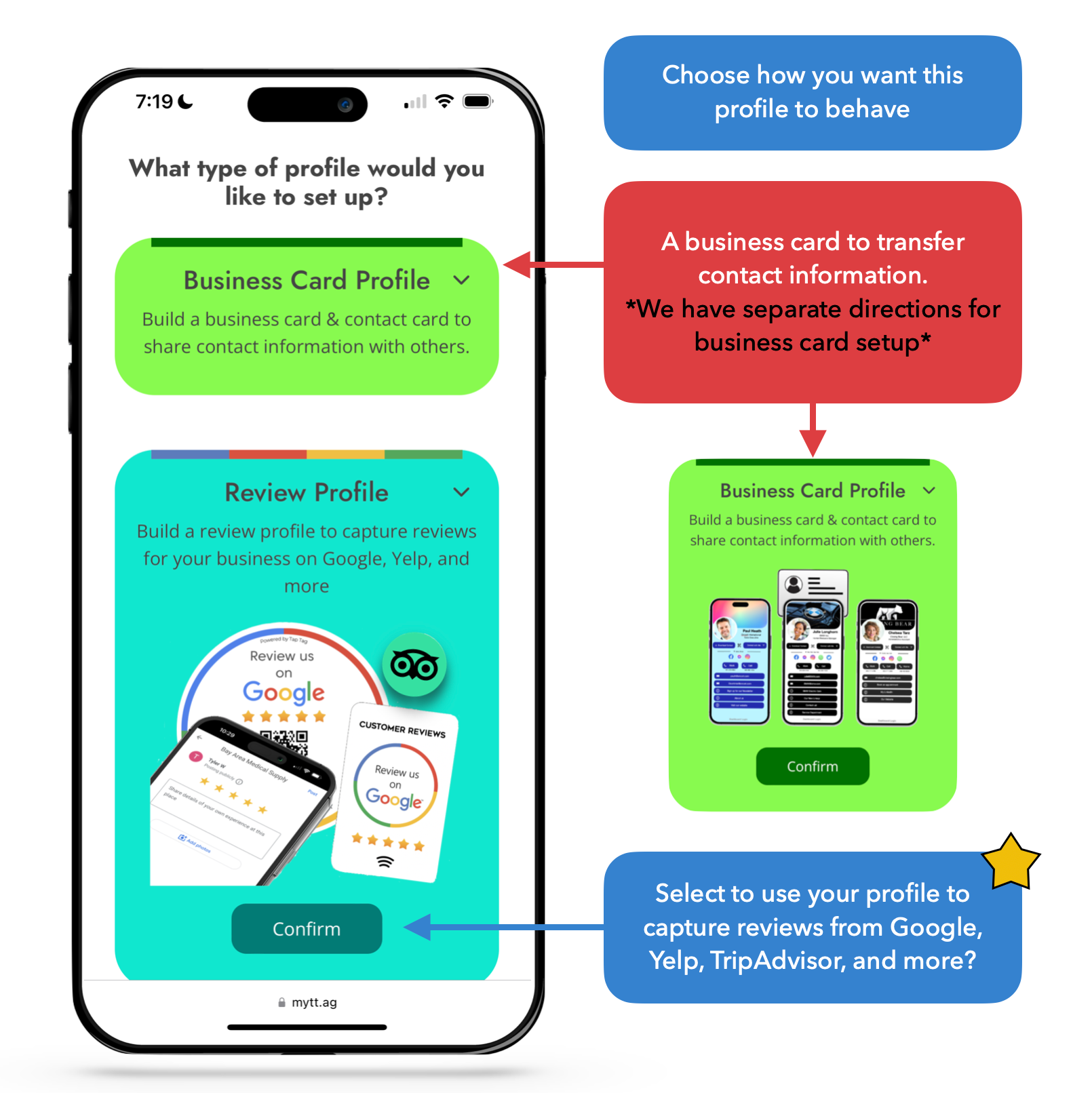 We offer two different systems that your Tap Tag can run off of, choose the second that says "Review Profile."