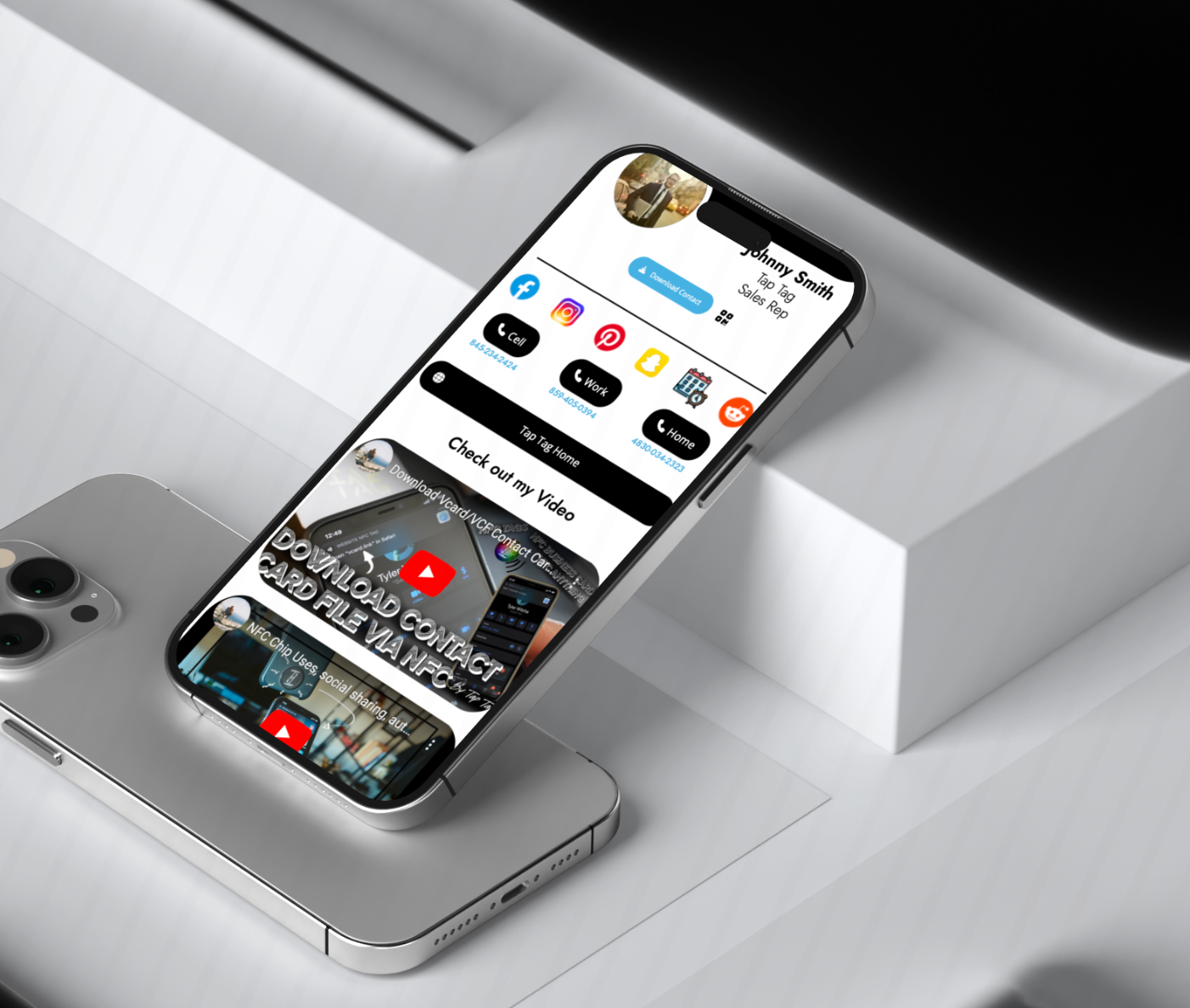 Simply tap/scan your NFC card or tag the first time to set up your account. Add the contact info you want to share with others then save. Every tap thereafter will direct others to your profile and an automatic contact download.  Each employee can link themselves to your admin account easily.