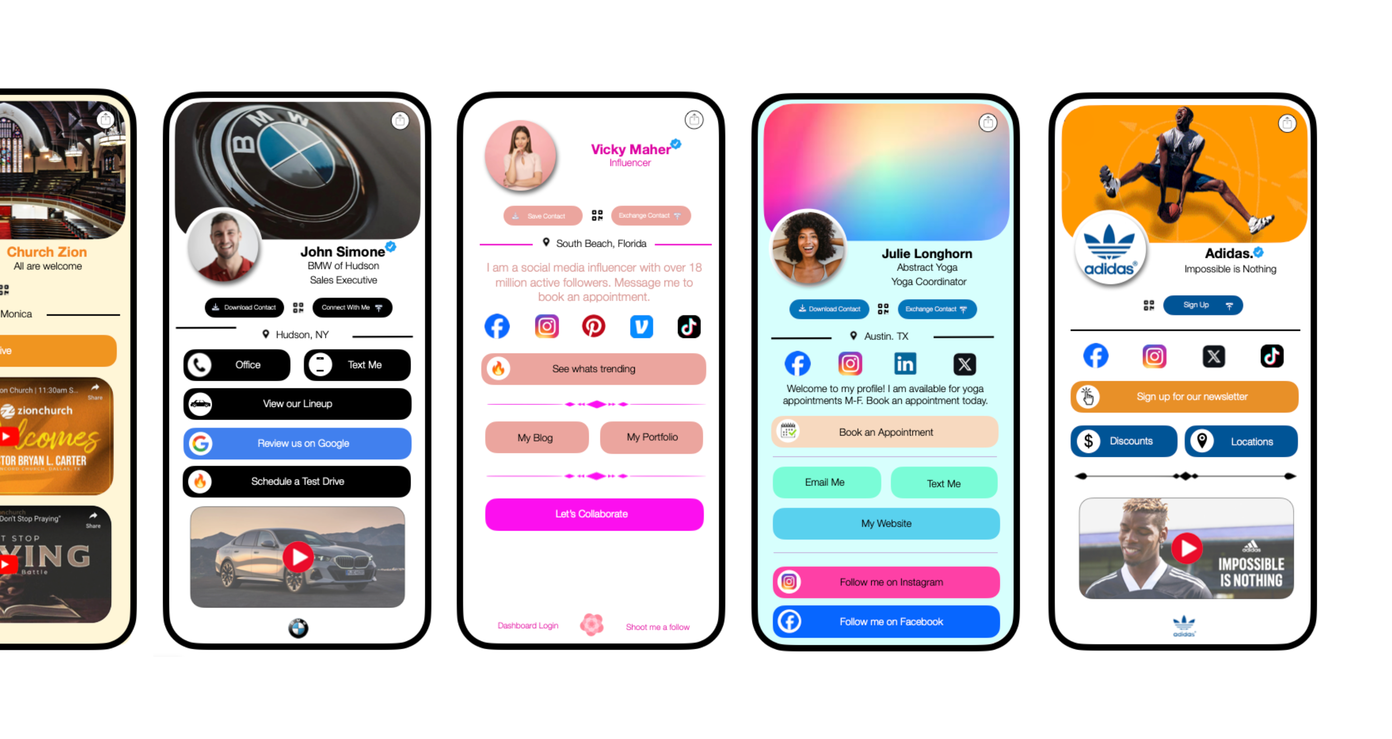 Simply tap/scan your NFC card or tag the first time to set up your account. Add the contact info you want to share with others then save. Every tap thereafter will direct others to your profile and an automatic contact download. Each employee can link themselves to your admin account easily.