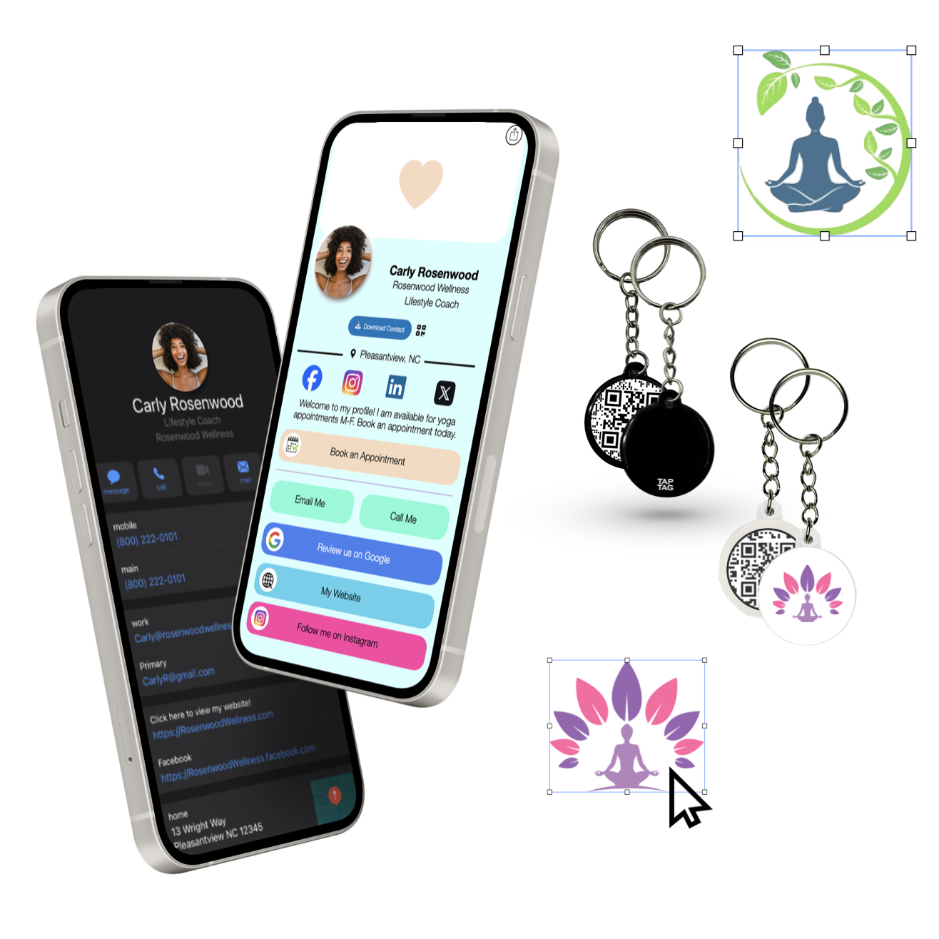 Okay! Tap Tags are physical items like cards, stands, keychains, etc that have the ability to be tapped by a smartphone or have a QR to be scanned by a camera to transfer data wirelessly.