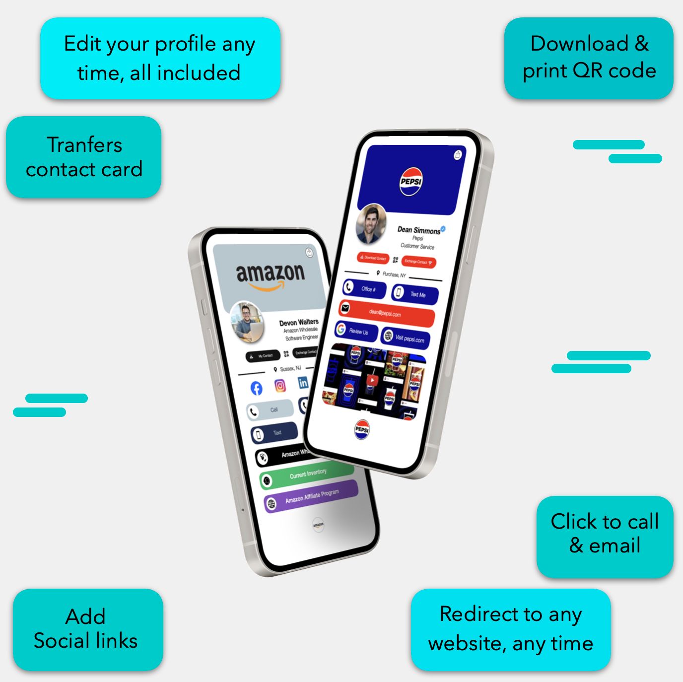 ✅ Links to a free digital profile. Share contact download and edit any time